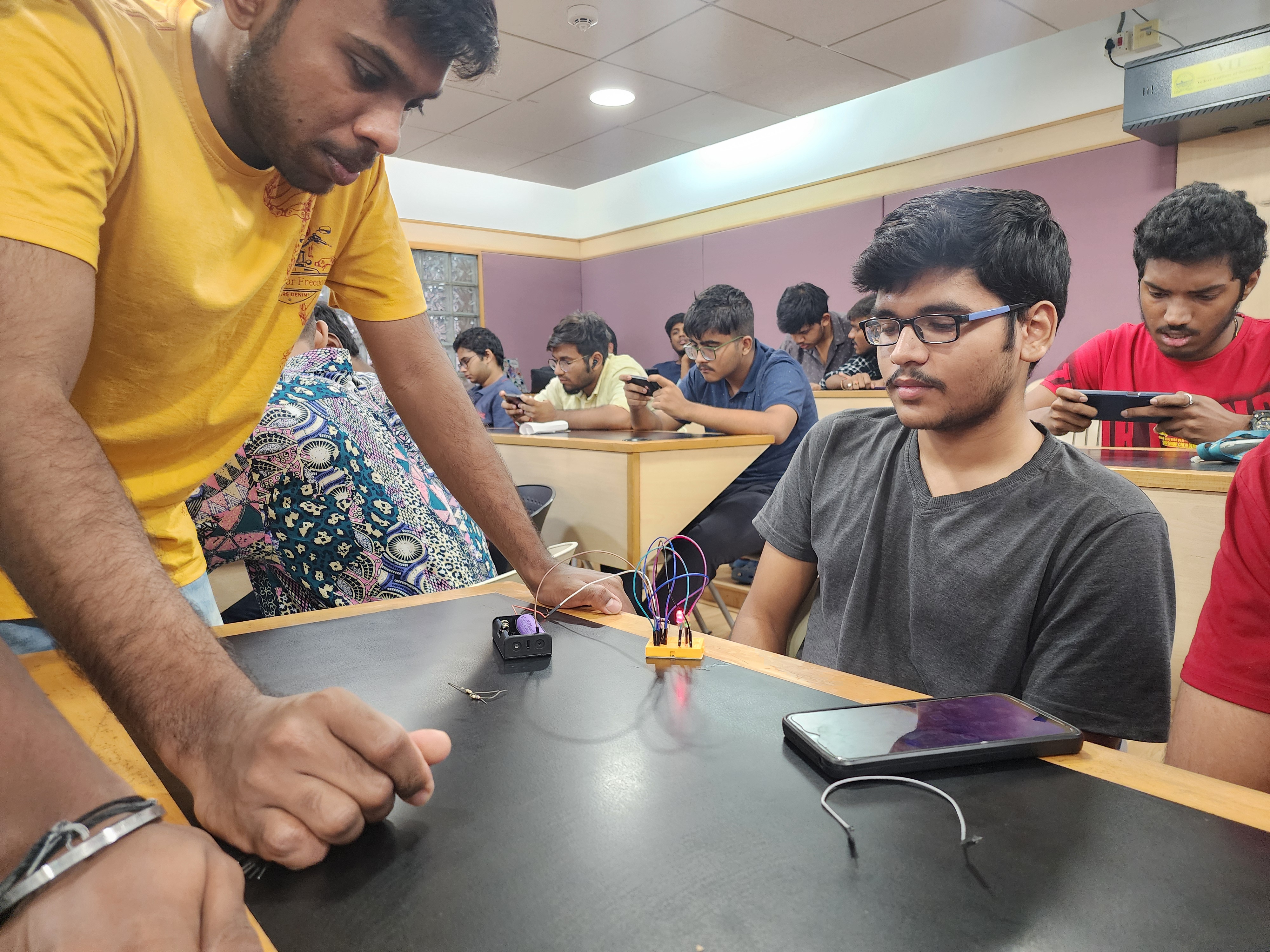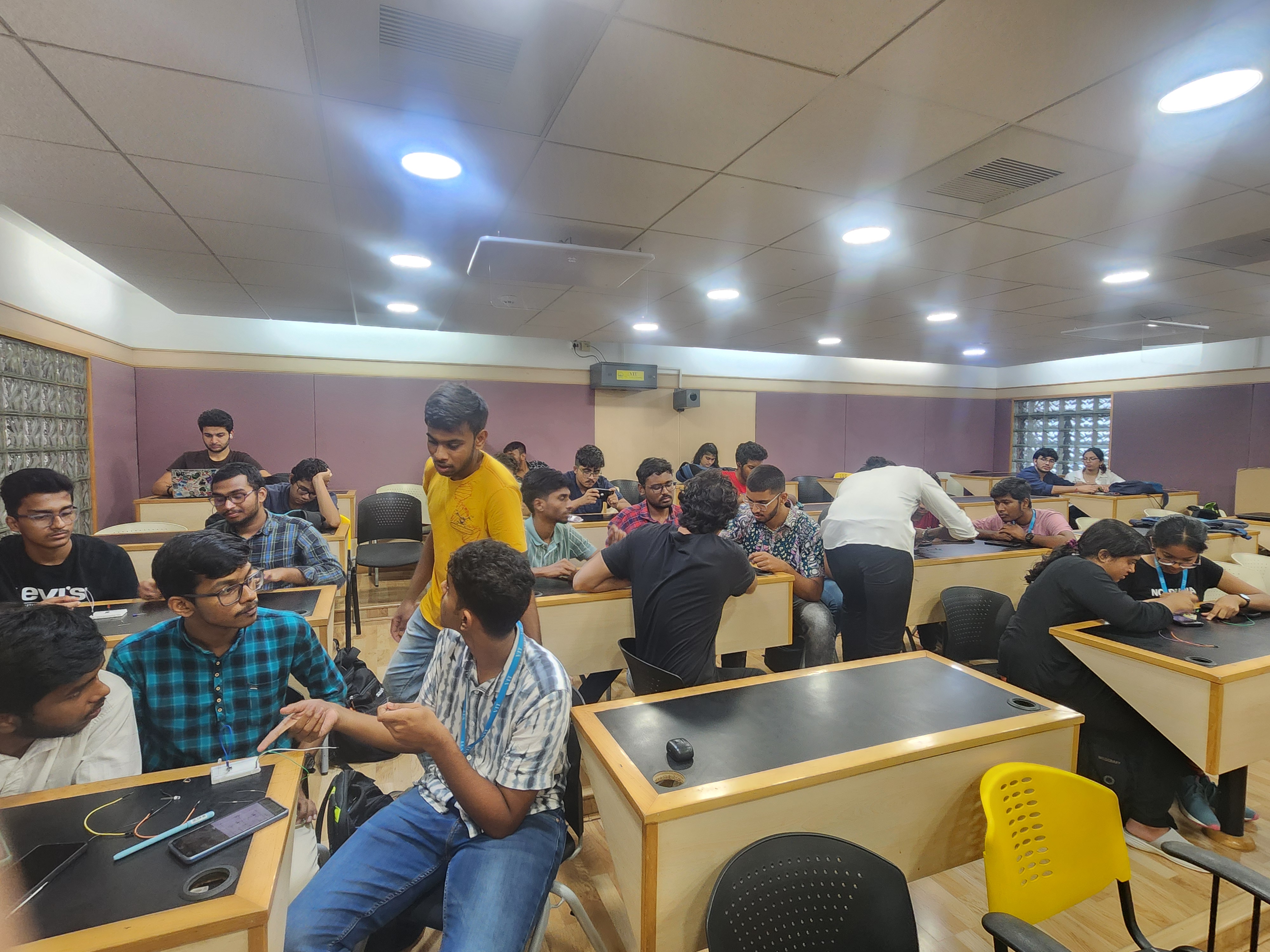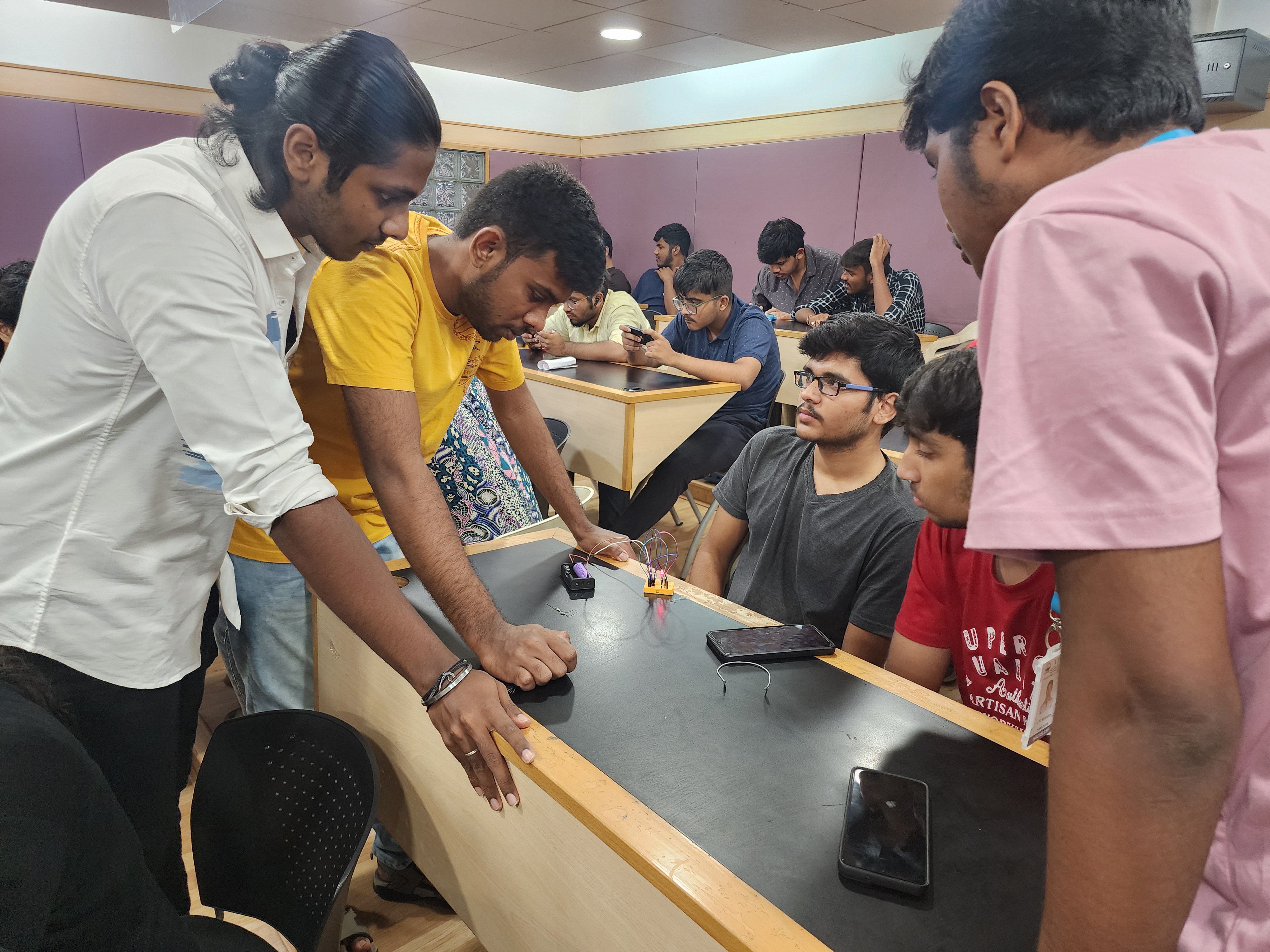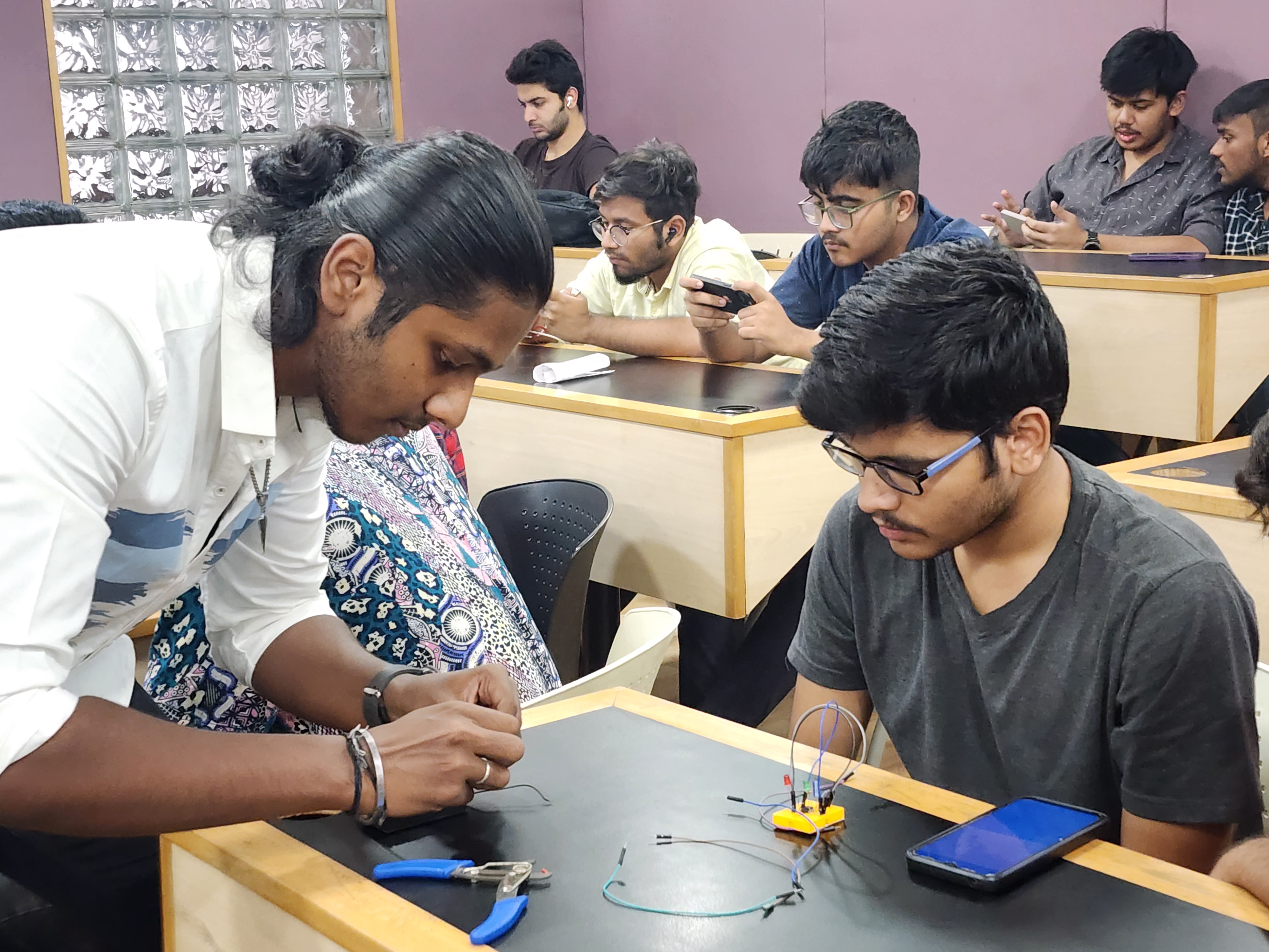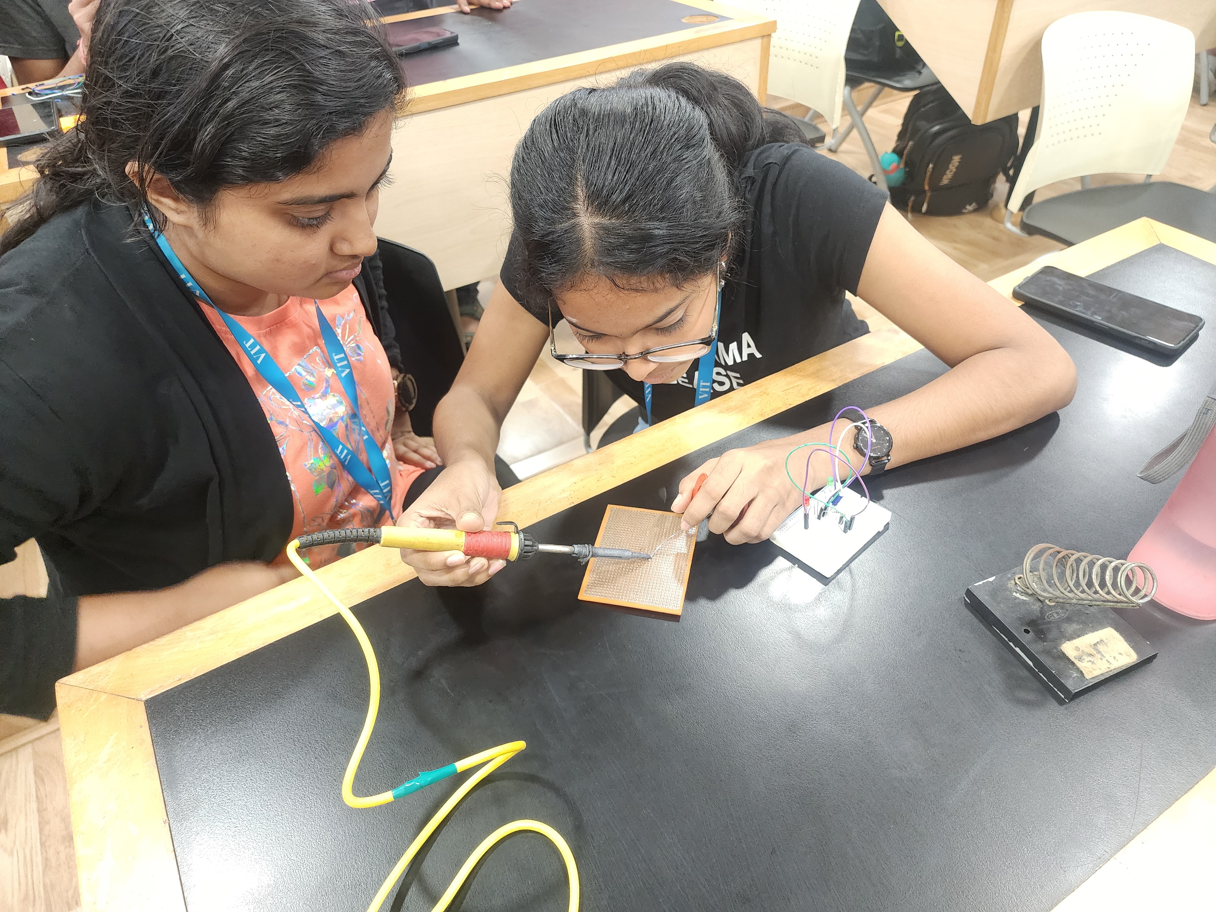 Organized PCBForge, a practical hands-on event where participants built circuits on printed circuit boards (PCBs). Taught essential skills such as soldering, desoldering, and using components like the 555 timer IC. The event emphasized real-world circuit assembly and troubleshooting experience. It successfully fostered technical confidence and engagement through guided experimentation.